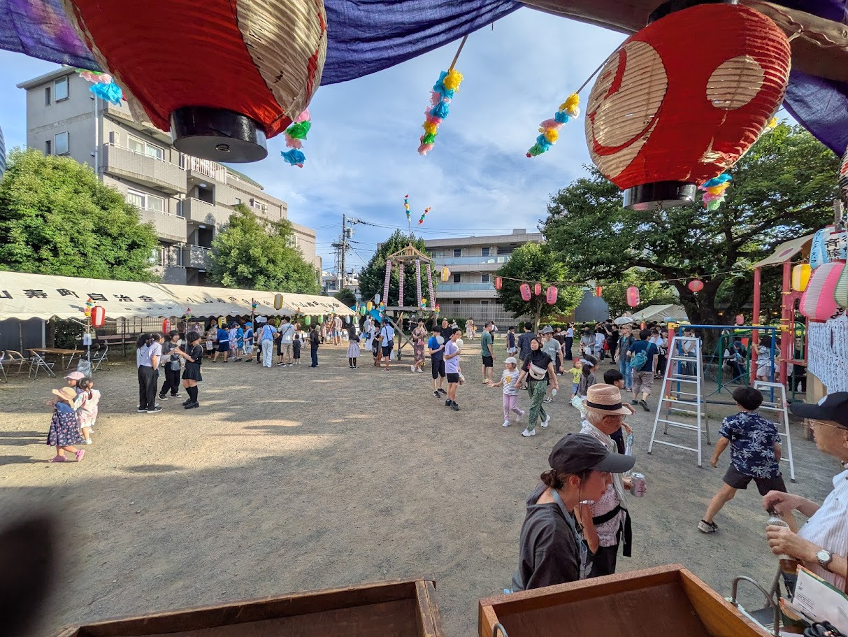 盆踊りの輪は 子どもたちが中心に 「おしゃべりしてないで、大人も踊りましょう」